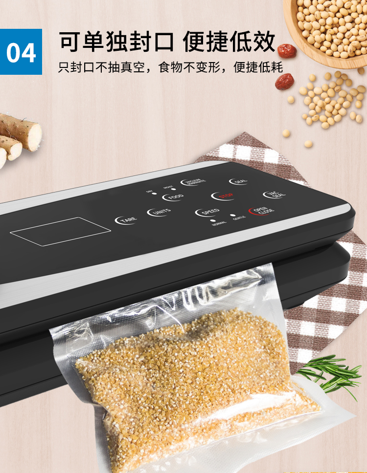 抽真空封口机家用小型食品机,保湿+称重,合二为一。干湿两用,单独封口,强劲抽力,智能真空,操作简单,防霉防潮。享受新鲜生活,日常食材保鲜,领鲜一步。看得见的品质,信得过的质量。